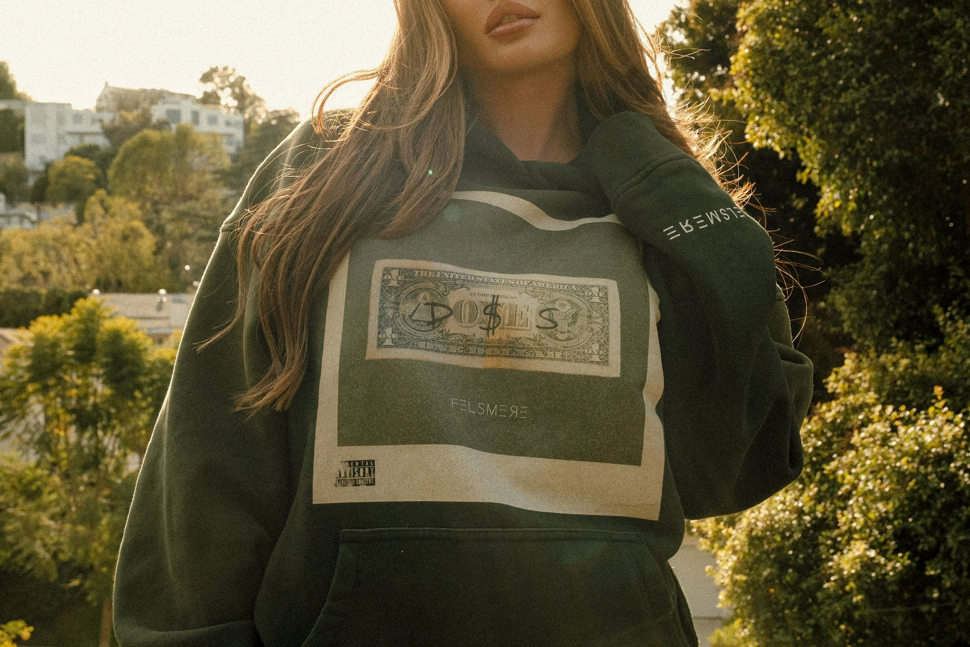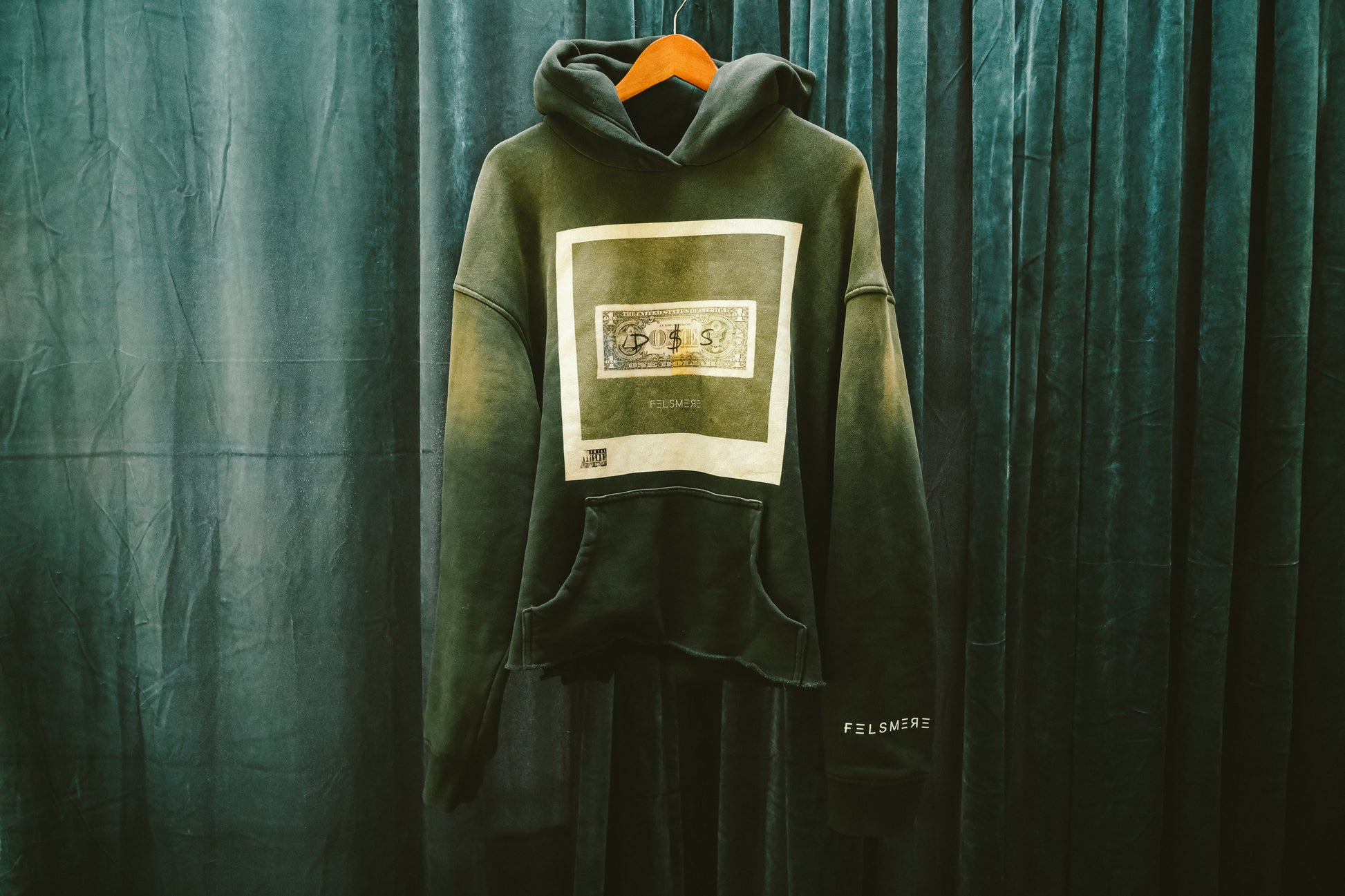DETAILS: Custom designed and dyed hoodie featuring the 'Do$es' album cover. Cut and Sew, all pieces made to order. All manufacturing, dying and distressing done in Los Angeles.